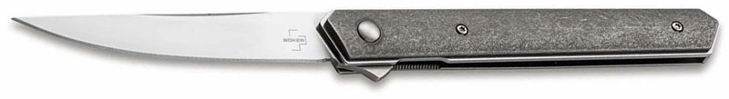 From the Boker website: The Boker Plus Kwaiken Air Titan by Lucas Burnley extends the dynasty of the successful Kwaiken family by an elegant lightweight version. With its straightforward and practical shape, this modern pocket knife has become a true icon. The clean lines and slim design of this model have been further optimised to achieve an uncompromising reduction in weight, although the knife still holds the complete blade when closed. The flipper provides intuitive operation and additional safety, while the linerlock securely locks the VG-10 ball bearing blade with satin-finished Hairline finish. The Gentleman Folder’s light-footedness is underlined by the high-quality titanium handle scales, which gives the knife an extremely modern look. With lanyard hole, detachable deep carry clip (tip-up/r) and high-quality nylon case for storage.