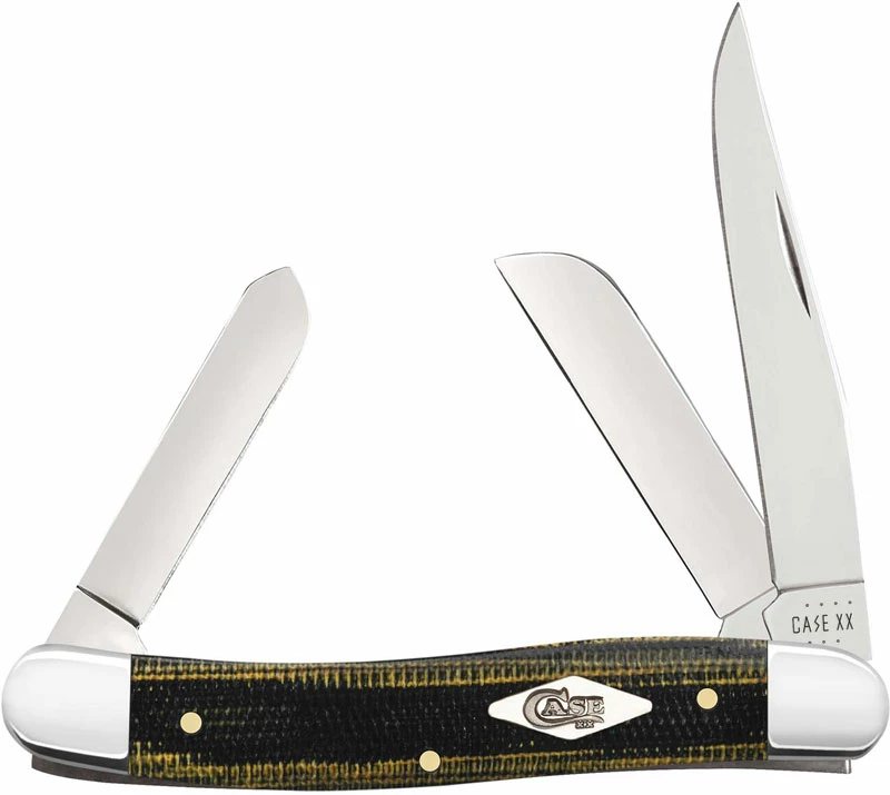 The 23471 Case Green and Black Micarta (10318SS) Medium Stockman Knife features mirror polished clip, spey and sheepfoot blades made of Tru-Sharp Surgical Steel with nail nicks for opening. The Green and Black canvas Micarta handle, 3 5/8 inches closed, has the Case Diamond Shield and nickel silver bolsters. The Case Medium Stockman Knife weighs 2.5 ounces. Made in the USA.