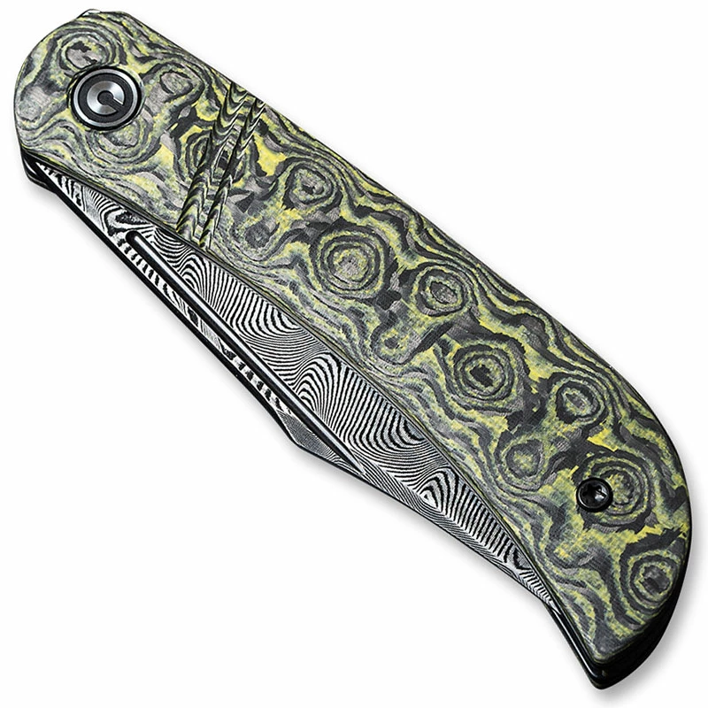 CIVIVI Knives: CIVIVI Appalachian Drifter, Black Damascus with Layered Yellow G10 / Rose Carbon Fiber, WE-C2015DS-3