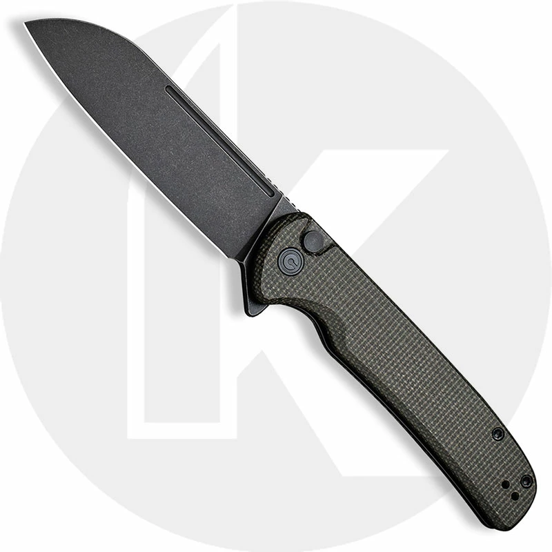 CIVIVI Knives: CIVIVI Chevalier Knife, Black Stonewash 14C28N, Dark Green Micarta, WE-C200222