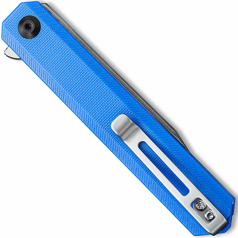 The C917B CIVIVI Chronic is a sleek value price EDC produced by CIVIVI, a subsidiary of WE Knife Company, that features a 3.22 inch clip point blade made of 9Cr18MoV stainless steel, .12 inches thick, with a Rockwell hardness of 58-60, a hollow grind, satin finish and a flipper for ambidextrous one hand opening. The slim profile blue G10 handle, 4.10 inches closed, has a pivot with steel ball bearing support for smooth opening, gray stainless steel liners and blue G10 backspacer for strength, a sturdy liner lock and a side to side reversible deep carry stainless steel pocket clip mounted at the butt end. This WE CIVIVI Chronic Knife has an overall open length of 7.32 inches, and it weighs 2.50 ounces. Made in China.