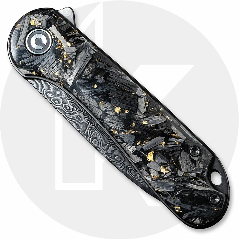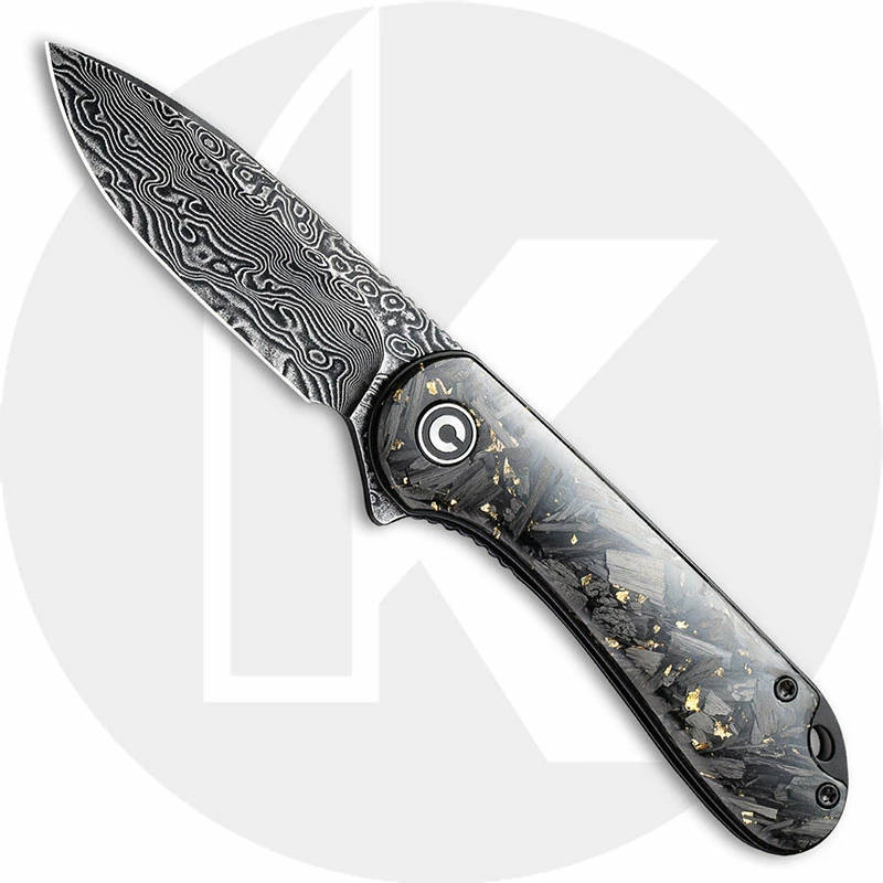 CIVIVI Knives: CIVIVI Elementum Knife, Black Damascus Blade, Shredded CF / Golden Shred, WE-C907CDS1
