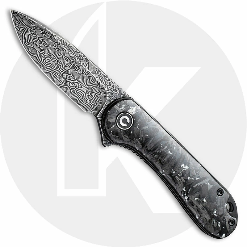 CIVIVI Knives: CIVIVI Elementum Knife, Black Damascus Blade, Shredded CF / Silvery Shred, WE-C907CDS2