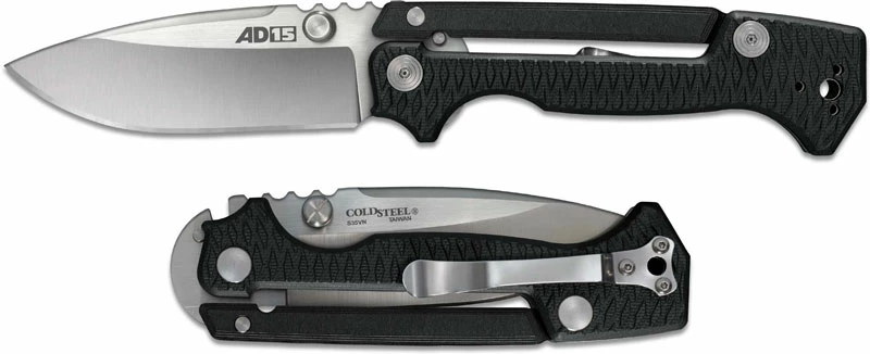 From Cold Steel: The AD-15 might be the most comfortable, user friendly, sub 4 inch tactical folder we’ve ever made! Modeled after Andrew Demko’s patented original, it offers ambidextrous operation and opens and closes with one hand. The saber ground spear point blade comes with a false edge and includes jimping on the spine to assure great piercing ability and edge control when precision cutting is required. The AD-15’s unique hybrid handle is what distinguishes it the most; because it features Andrew’s famous Scorpion Lock. You see, the bottom portion of the handle has 3D-machined G-10 scales mated to steel liners, while the upper portion of the handle, called the “yoke” is crafted from a 3D-machined 6061 aluminum billet that includes an integral back spacer which conceals a strong compression spring. To open the knife, simply engage the thumb stud and watch the yoke rise up, until it falls snugly into a deep notch cut in the blade’s tang. Held securely by constant pressure from the spring and, supported by the strength of one’s grip, the Scorpion Lock is virtually immune from failure!