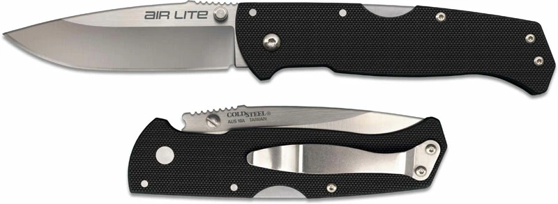 From Cold Steel: We know many of our customers are more and more concerned about the weight and “bulk” of their EDC (every day carry) knife as there is a lot of competition for the limited space in their pockets. That’s why we focused on making a feather light (3.2 oz) ultra slim (8.8 mm thick) folder that can be carried 24/7 while still leaving room in the pocket for other essential gear. But what we didn’t do in our quest to make a super EDC knife was skimp on workmanship and materials. That’s why every Tanto and Drop point blade in our Air Lite series exhibits flawless craftmanship and premium materials. The blades are made from costly Japanese 10A stainless steel famed for its edge holding ability, strength and toughness and the handles are laser cut from real G-10. Even the locking mechanism can’t be beat as there is nothing better than our celebrated Tri-Ad® Lock when it comes to protecting your fingers. Budget friendly pricing, amazing sharpness, and enormously comfortable and useable, the Air Lites are hard to beat for every day carry!