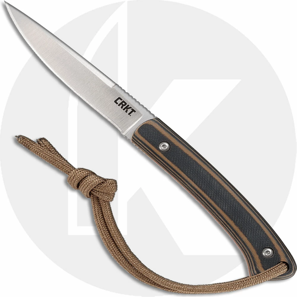The 2382 CRKT Biwa Knife, designed by Alan Folts of Melbourne, Florida, is a sleek EDC neck knife that features a 3.02 inch drop point fixed blade made of 8Cr13MoV stainless steel, .11 inch thick. The blade has a satin finish, a swedged spine to lessen weight, and a notched thumb rest for secure purchase. The Biwa has full tang construction for strength, slim profile brown and black G10 scales, and a lanyard. A black thermoplastic sheath with neck lanyard is included. The CRKT Biwa has an overall length of 6.63 inches, and it weighs 1.6 ounces; 2.7 ounces with the sheath. Made in China.