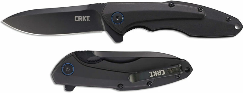 The CRKT Caligo Knife, designed by Idaho knifemaker TJ Schwarz, is a little workhorse of an EDC that features a 3.185″ spear point blade made of 8Cr14MoV stainless steel, .129″ thick, with a non reflective black oxide finish, a top swedge, a notched thumb rest for secure grip, and a flipper for ambidextrous one hand opening. The black anodized 6061-T6 aluminum handle, 4.471″ closed, has a decorative blue pivot ring for visual appeal, the Flavio Ikoma designed IKBS Ball Bearing Pivot System for smooth opening, finger grooves and palm swell onlay for secure purchase, liner lock, lanyard hole and removable steel pocket clip mounted at the butt end. The Caligo Knife has an overall open length of 7.625″, and it weighs 3.4 ounces.