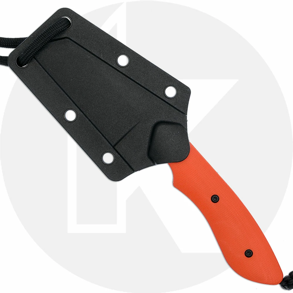 The 2399 CRKT S.P.I.T. (Small. Pocket. Inverted. Tanto.) Neck Knife, designed by Alan Folts of Melbourne, Florida, is a handly little EDC that features a 2.29 inch satin finished reverse tanto fixed blade made of 8Cr13MoV stainless steel, .11 inch thick, with dark stonewash flats, and a notched thumb ramp for secure purchase. The S.P.I.T. Knife has full tang construction for strength, ergonomic contours for comfort, orange G10 fiber scales, and a braided fob. A black thermoplastic sheath with neck lanyard is included. The CRKT S.P.I.T. Knife has an overall length of 5.48 inches, and it weighs 1.90 ounces, 2.90 ounces with the sheath. Made in China.