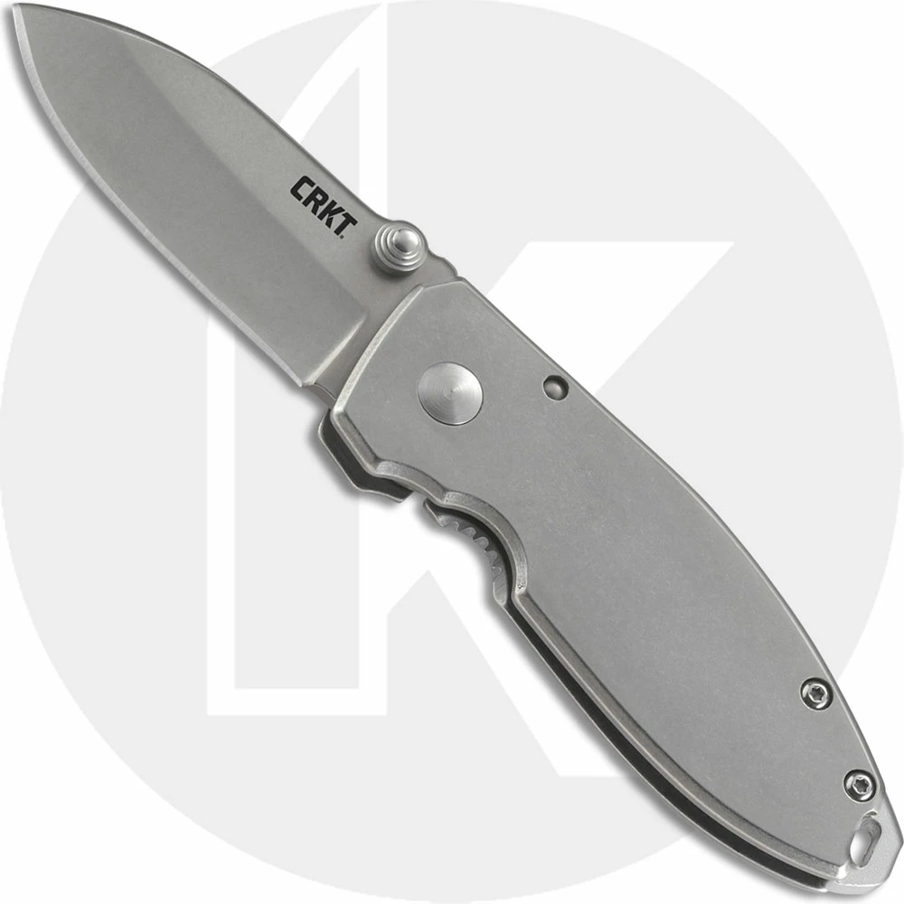 The illustrated CRKT Knife is the CRKT Squid Knife, designed by Lucas Burnley, that features a 2.14″ drop point blade made of 8Cr13MoV stainless steel, .110″ thick, with a Rockwell hardness of 58-60. The blade of this CRKT knife has a silver stonewash finish, a notched thumb ramp for secure grip, and dual thumb studs for ambidextrous one hand opening. The silver stonewashed contoured stainless steel handle, 3.49″ closed, has a sturdy frame lock and a lanyard hole. A discreet carry steel pocket clip is mounted at the butt end of this CRKT Knife. The Squid Knife has an overall open length of 5.71″, and it weighs 3.4 ounces.
