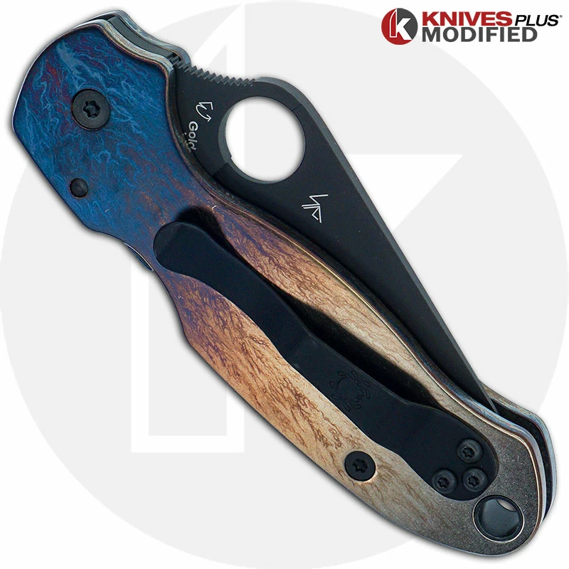 MODIFIED Spyderco Para 3 Black DLC Knife + KP Titanium Quasar Scales