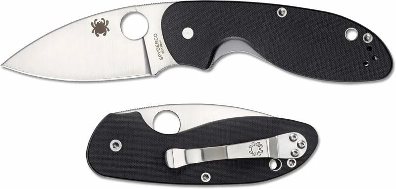 From the Spyderco website: The Efficient is the latest addition to Spyderco’s popular Value Folder family of affordably priced full-service folding knives. Its compact, ergonomic design centers around a full-flat-ground droppoint blade made from 8Cr13MoV stainless steel. The broad PlainEdge blade features an index-finger choil and a gently curved spine that flows seamlessly into a handle built with full, skeletonized stainless steel liners, textured G-10 scales, and a stainless steel back spacer. The handle’s liners form the foundation of a sturdy LinerLock mechanism that locks the blade securely open, yet allows easy one-handed release. To ensure convenient, ambidextrous carry and easy access, the Efficient comes complete with a reversible hourglass clip configured for tip-up carry.