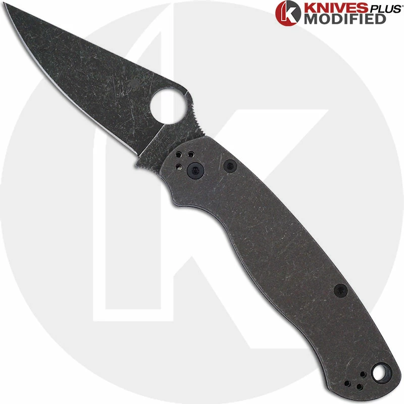 MODIFIED Spyderco Para Military 2 Maxamet Knife with Acid Stonewash Blade + KP Titanium Blasted Tumbled Scales + KP All Black Hardware – The RHINO
