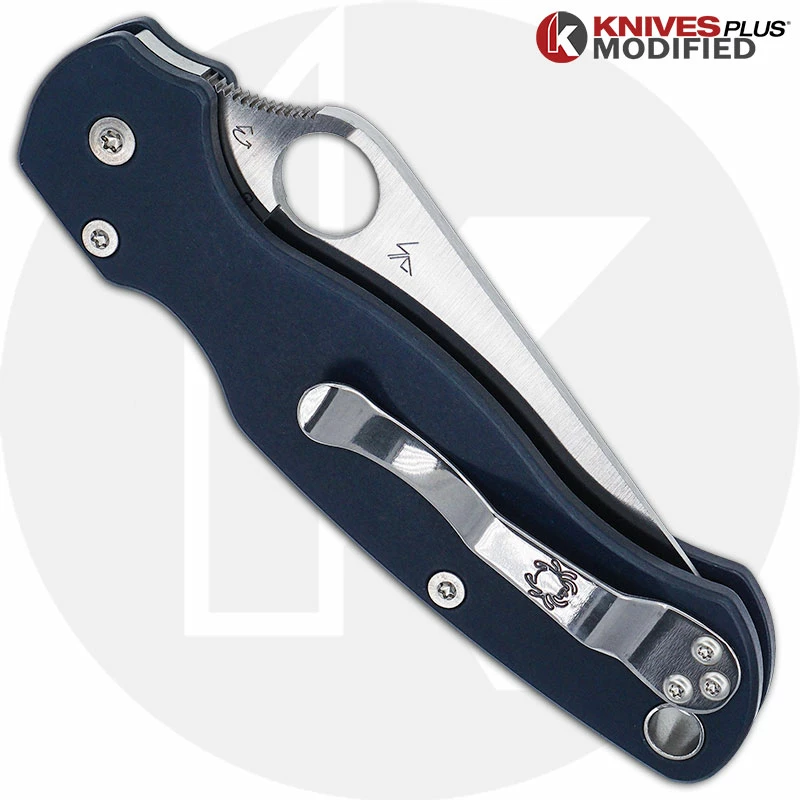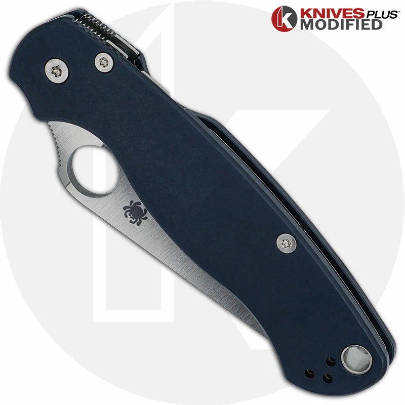 MODIFIED Spyderco Paramiliary 2 Knife – Satin Blade – Exclusive AWT Smooth Midnight Blue Scales