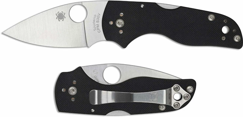 The Lil’ Native Backlock is a compact addition to the popular Native series – a perfect little everyday carry (fully ambidextrous for lefties!) that features a 2.47″ leaf shaped blade made of CPM S30V stainless steel, .125″ thick, with a full flat grind, a pronounced choil for secure purchase, and the Spyderco hole for ambidextrous one hand opening. The slim profile black G10 handle, 3.47″ closed, has subtle texturing and ergonomic contours for comfortable grip, a sturdy backlock, a large lanyard hole, and a four position stainless steel pocket clip. The Spyderco Lil’ Native Backlock Knife has an overall open length of 5.94″, and it weighs only 2.1 ounces. Made in the USA.