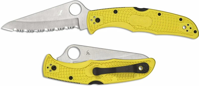 Its linerless construction also further reduces the knife’s weight and its vulnerability to corrosion. This version of the Pacific Salt 2 features a bright yellow handle that is easy to see in and around the water with a choice of a PlainEdgeâ„¢ or fully serrated SpyderEdgeâ„¢ blade.