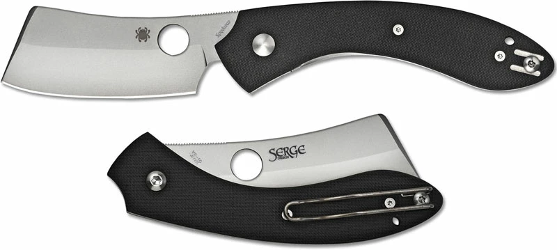 From the Spyderco website: Designed by custom knifemaker Serge Panchenko, the Roc combines an unusual cleaver-style blade with a gracefully curved handle and a sturdy LinerLock mechanism to create a uniquely functional cutting tool that challenges convention. Precision ground from VG-10 stainless steel, the Roc’s blunt-tipped, PlainEdgeâ„¢ blade features a low-profile matte gray finish and a saber grind that balances high-performance edge geometry with the strength and heft of a full-thickness spine. A long section of jimping (textured grooves) on the blade’s spine provides a solid purchase for the user’s thumb, and an easily accessible Trademark Round Holeâ„¢ ensures swift, positive one-handed opening with either hand.