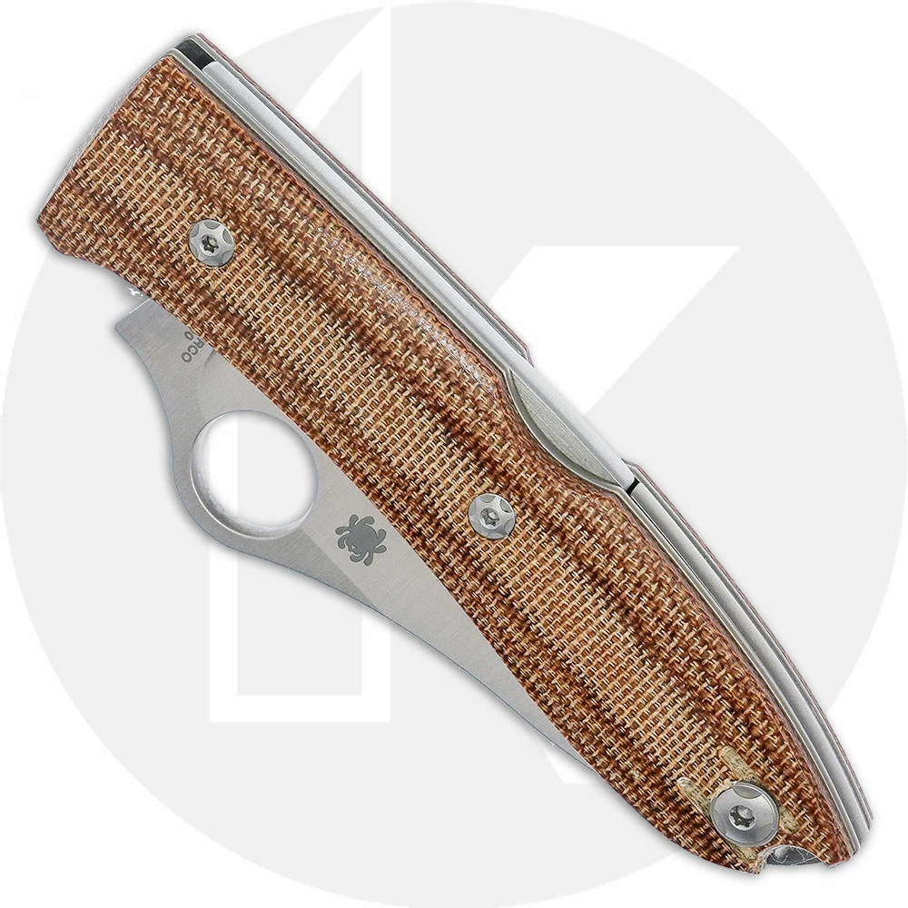 The C255CMP Spyderco SpyOpera Knife is a classy everyday carry, designed by Italian custom knifemaker Max and produced in collaboration with lionSTEEL, that features a 2.88 inch drop point blade made of high performance M390 stainless steel, .100 inch thick. The blade has a full flat grind and the Spyderco hole for ambidextrous one hand opening. The brown canvas micarta handle, 4.02 inches closed, has skeletonized full titanium liners and a stainless steel backspacer for strength, sturdy lockback, a lanyard hole and a removable wire clip mounted at the butt end. The Spyderco SpyOpera Knife has an overall open length of 6.90 inches, and it weighs 2.7 ounces. Made in Italy.