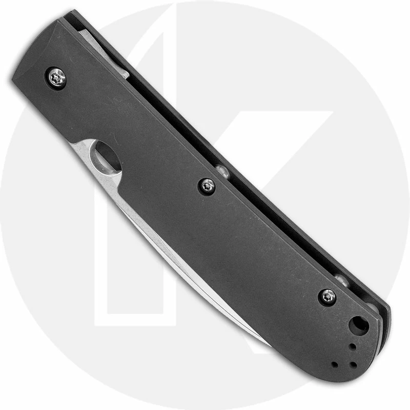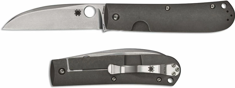 The C249TIP Spyderco SwayBack Knife is a classic mid-size gent’s style EDC, designed by Polish knifemaker Marcin Slysz, that features a 3.53 inch Wharncliffe blade made of CTS XHP stainless steel, .139 inch thick. The blade has a stonewash finish, hollow grind with a top swedge, and the Spyderco hole for ambidextrous one hand opening. The sleek titanium handle, 4.51 inches closed, has open construction, sturdy R.I.L. (Reeve Integral Lock) frame lock with stainless steel interface, a sizable lanyard hole, and a side to side reversible steel pocket clip mounted at the butt end. The Spyderco SwayBack Knife has an overall open length of 8.04 inches, and it weighs 3.9 ounces. Made in Taiwan.
