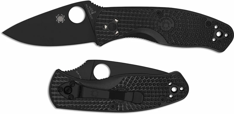 From the Spyderco 2022 Reveal 9 Product Guide: For tactical end users concerned with light discipline and those who simply prefer the no-nonsense look of a black blade, this version of the Persistence Lightweight cloaks the 8Cr13MoV blade in a stealthy black oxide coating. Consistent with that theme, the knife’s Bi-Directional Textured FRN scales are also black and the handle’s hardware, full stainless steel liners, and four-position pocket clip also sport nonreflective black coatings. The full-flat-ground blade of this knife is available with a choice of a PlainEdge or CombinationEdge.
